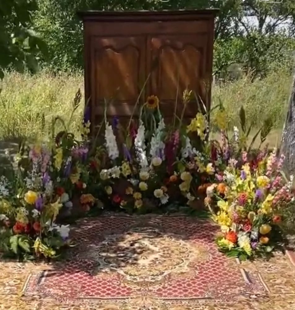 Old French armoire doors in original frame. Used as a wedding backdrop. Pickup only.