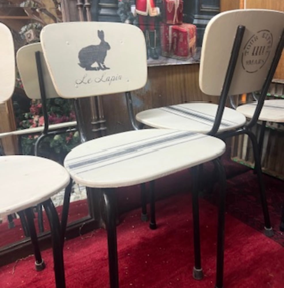School chair that had been handpainted and stencilled. Two available. Pick up only.